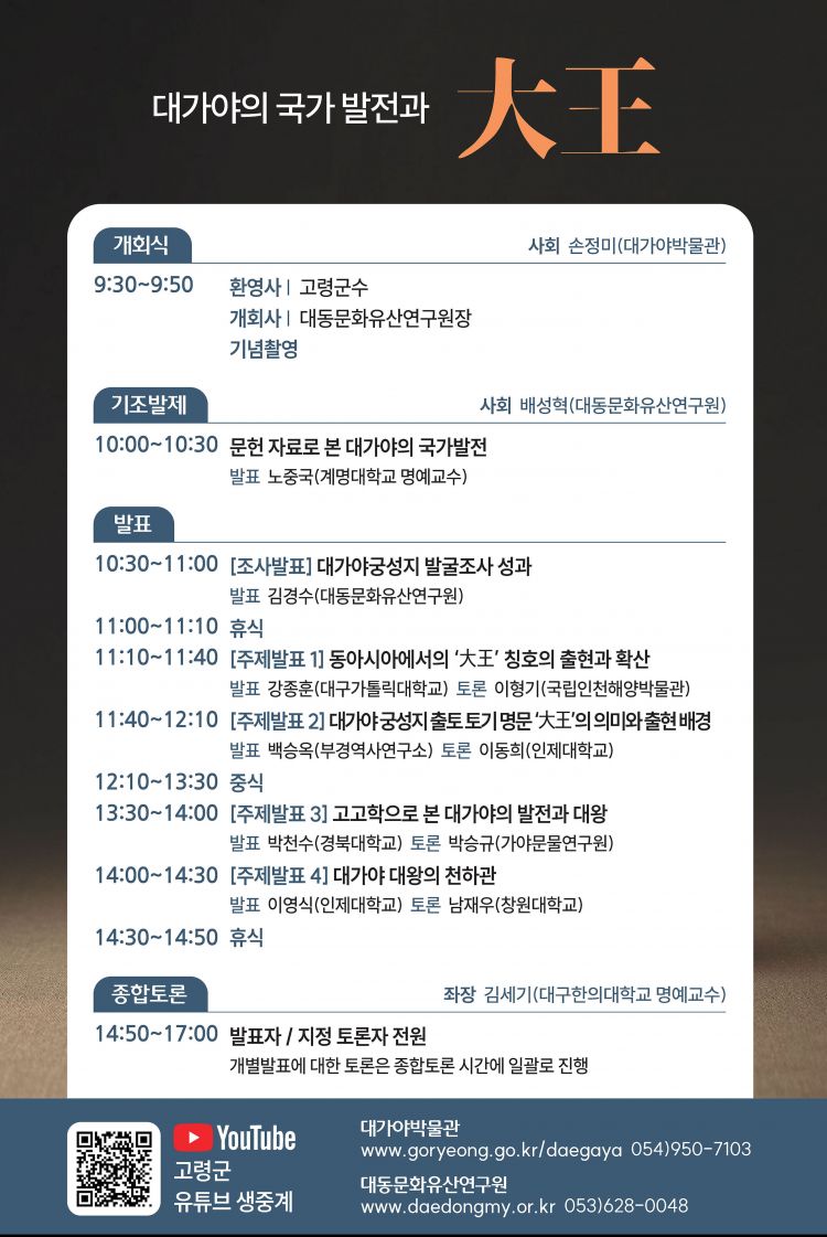 - ÁÖÁ¦: ´ë°¡¾ßÀÇ ±¹°¡ ¹ßÀü°ú ÓÞèÝ - ÀϽÃ: 2025³â 11¿ù 14ÀÏ(±Ý) ¿ÀÀü 09:30 - ÁÖÃÖ: ´ë°¡¾ß¹Ú¹°°ü - ÁÖ°ü: (Àç)´ëµ¿¹®ÈÀ¯»ê¿¬±¸¿ø - Àå¼Ò: ´ë°¡¾ß¹Ú¹°°ü °´ç(°æºÏ °í·É±º ´ë°¡¾ßÀ¾ ´ë°¡¾ß·Î 1203) - ¼¼ºÎÀÏÁ¤