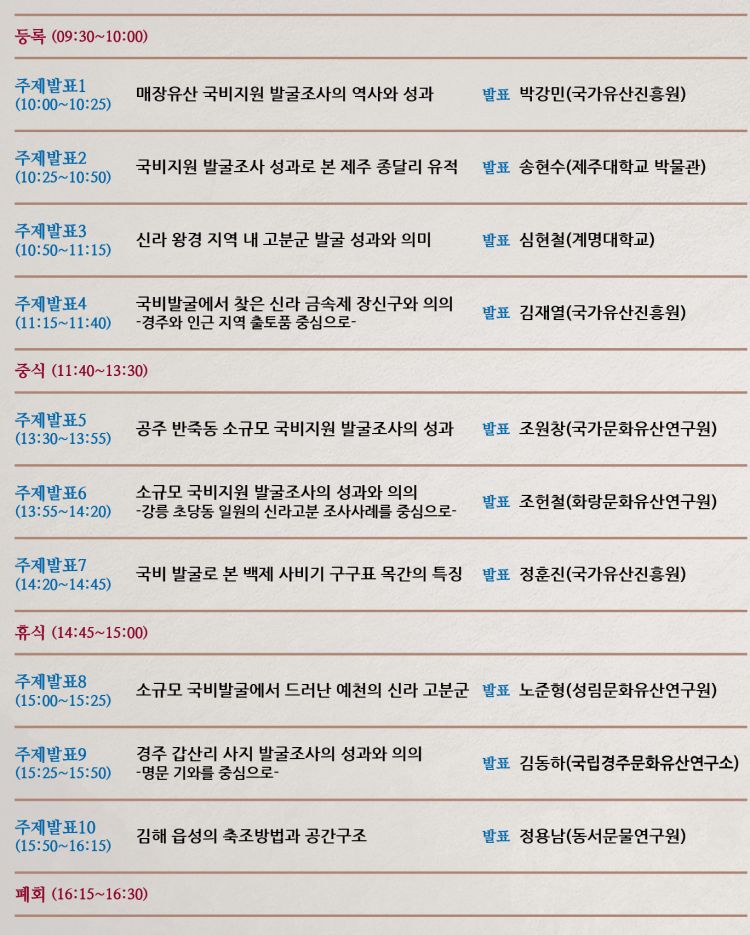 - Çà»ç¸í: ±¹ºñÁö¿ø ¹ß±¼Á¶»ç 15ÁÖ³â -Èð¾îÁø Á¶°¢, ¿Ï¼ºµ¿ ÆÛÁñ- - °³ÃÖÀϽÃ: 2025³â11¿ù 8ÀÏ Åä¿äÀÏ ¿ÀÀü 09:30~16:30 - ÁÖÃÖ/ÁÖ°ü: ±¹°¡À¯»êÁøÈï¿ø - Àå ¼Ò: °æºÏ´ëÇб³ ´ëÇпøµ¿ 101È£ (Á¦49ȸ Çѱ¹°í°íÇÐÀü±¹´ëȸ ÀÚÀ¯ÆÐ³Î¹ßÇ¥ Á¦10ºÐ°úÀå) - ¼¼ºÎÀÏÁ¤