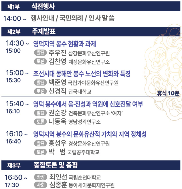 - ÁÖÁ¦: ¿µ´öÁö¿ª ºÀ¼öÀÇ °¡Ä¡¿Í Áö¿ª Á¤Ã¼¼º - ÀϽÃ: 2025³â 11¿ù 26ÀÏ ¼ö¿äÀÏ ¿ÀÈÄ 2½Ã - ÁÖ°ü/ÁÖÃÖ: ¿µ´ö±º - Àå¼Ò: ¿µ´ö ¹«ÇüÀ¯»ê Àü¼ö°ü(¿¹ÁÖ¹®È¿¹¼úȸ°ü ºÎÁö ³»: °æºÏ ¿µ´ö±º ¿µÇظé 318¸¸¼¼±æ 38) - ¼¼ºÎÀÏÁ¤