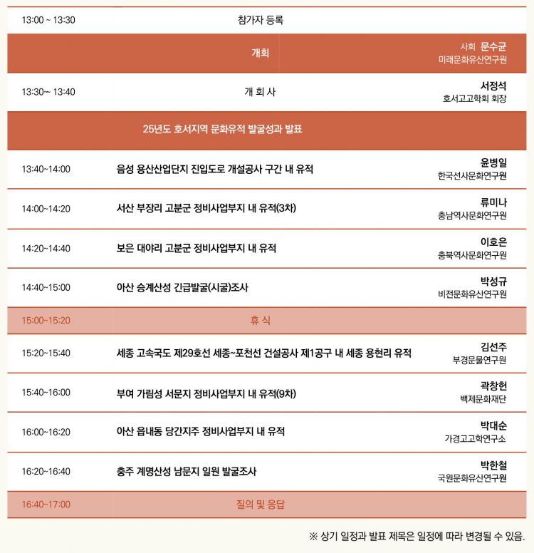 ¡Ý Çмú´ëȸ¸í : È£¼°í°íÇÐȸ Á¦53ȸ Á¤±âÇмú´ëȸ È£¼Áö¿ª ¹®ÈÀ¯Àû ¹ß±¼¼º°ú ¡Ý ÀÏ ½Ã : 2026³â 4¿ù 23ÀÏ(¸ñ) 13:00~17:00 ¡Ý Àå ¼Ò : ÃæºÏ´ëÇб³ °³½Å¹®È°ü ¼¼¹Ì³ª½Ç 2Ãþ ¡Ý ¼¼ºÎÀÏÁ¤
