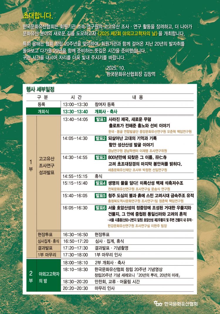 Á¦¸ñ Çѱ¹¹®ÈÀ¯»êÇùȸ 2025 Á¦2ȸ ¾ß¿Ü°í°íÇÐÀÚÀÇ ³¯ °³ÃÖ |