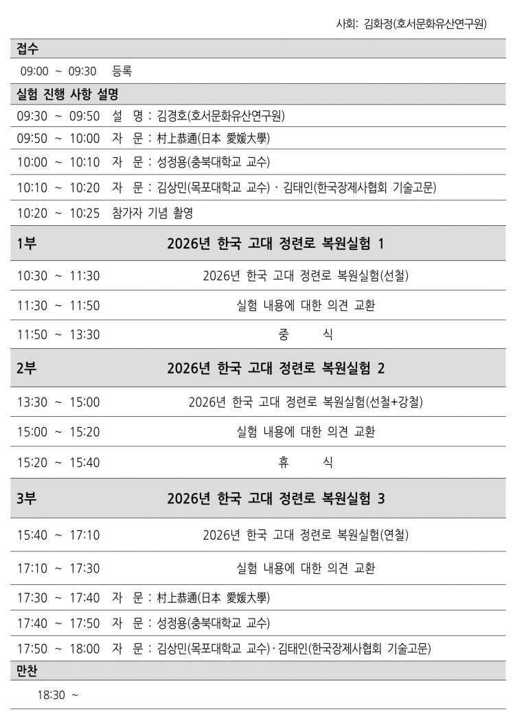 - ½Ç Çè ¸í : (Àç)È£¼¹®ÈÀ¯»ê¿¬±¸¿ø 2026³â Çѱ¹ °í´ë Á¤·Ã·Î º¹¿ø ½ÇÇè(°ø°³) - ÀÏ ½Ã : 2026³â 3¿ù 28ÀÏ(Åä) 09:30~17:00(IV. ¼¼ºÎÀÏÁ¤ ÂüÁ¶) - Àå ¼Ò : (Àç)È£¼¹®ÈÀ¯»ê¿¬±¸¿ø(ÃæºÏ ûÁֽà ¼¿ø±¸ ³²ÀÌ¸é ³²¼®·Î 376) - ÀÚ¹®À§¿ø : õ½ß¾Íñ÷×(ìíÜâ äñê°ÓÞùÊ Îçâ£), Å뿪 : Á¤Á¾È£(µ¿¾ç´ëÇб³) ¼ºÁ¤¿ë(ÃæºÏ´ëÇб³ ±³¼ö) ±è»ó¹Î(¸ñÆ÷´ëÇб³ ±³¼ö) ±èÅÂÀÎ(Çѱ¹ÀåÁ¦»çÇùȸ ±â¼ú°í¹®) - ÁÖ ÃÖ : Àç´Ü¹ýÀΠȣ¼¹®ÈÀ¯»ê¿¬±¸¿ø - Âü°¡½Åû±â°£ : 2026³â 3¿ù 16ÀÏ(¿ù)~2026³â 3¿ù 23ÀÏ(¿ù) - ¼¼ºÎÀÏÁ¤